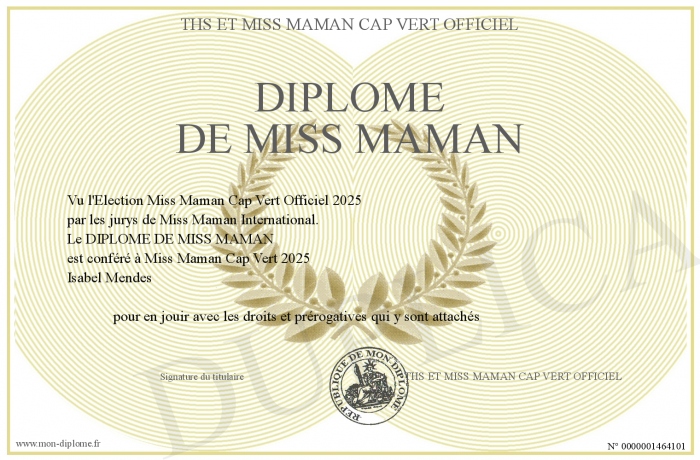 Envoyez par email votre DIPLOME DE MISS MAMAN personalisé