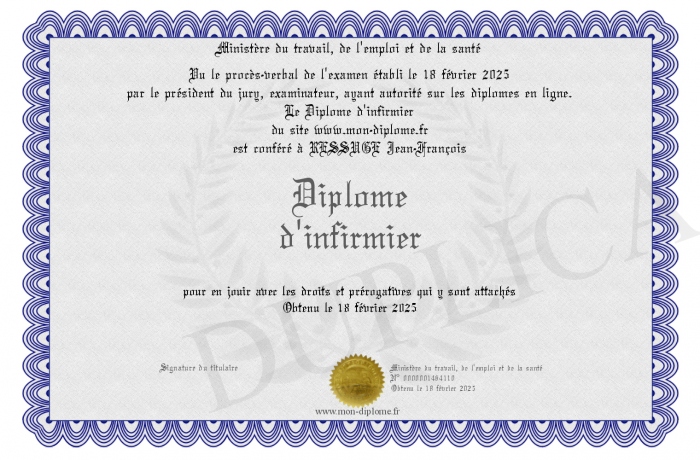 Envoyez par email votre Diplome d'infirmier personalisé
