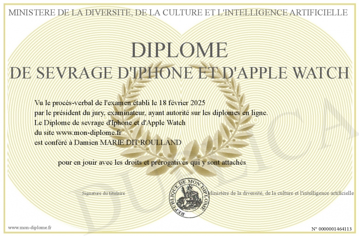 Envoyez par email votre Diplôme de sevrage d'Iphone et d'Apple Watch personalisé