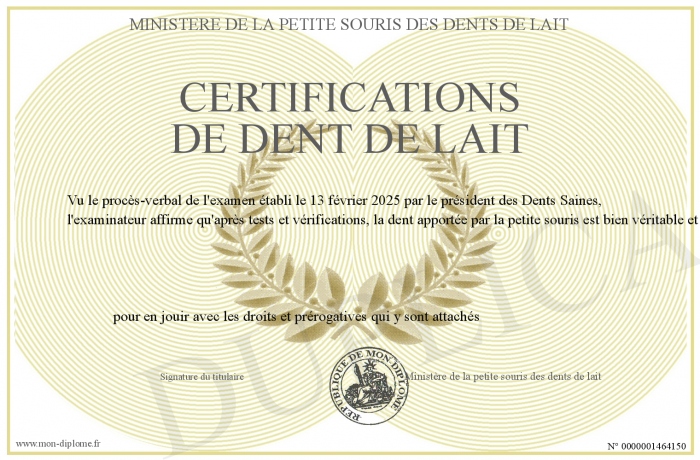 Envoyez par email votre Certifications de dent de lait personalisé