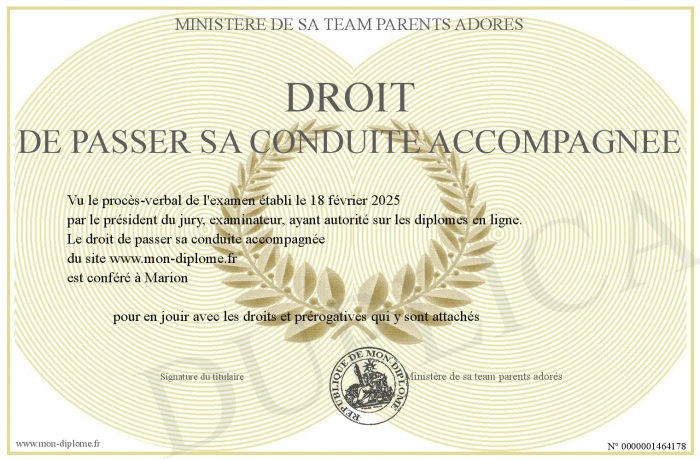 Envoyez par email votre droit de passer sa conduite accompagnée personalisé