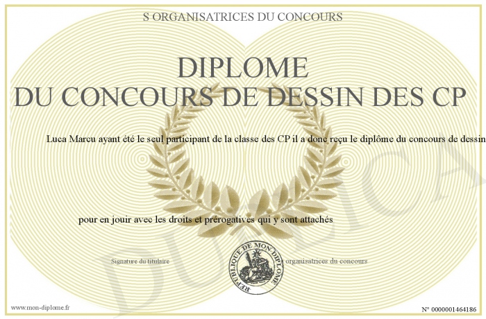 Envoyez par email votre Diplôme du concours de dessin des cp personalisé