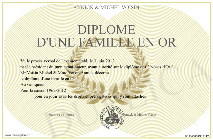 Envoyez par email votre Diplôme d'une famille en or personalisé