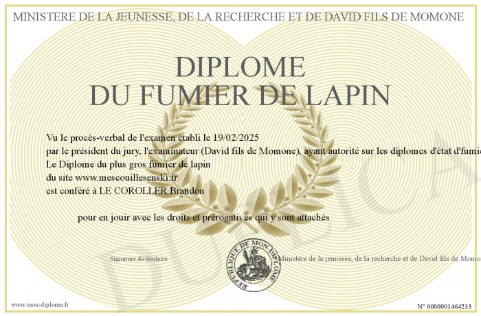 Envoyez par email votre Diplôme du fumier de lapin personalisé
