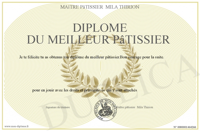 Envoyez par email votre Diplôme du meilleur pâtissier personalisé