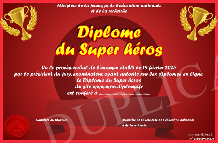 Envoyez par email votre Diplôme du Super héros personalisé