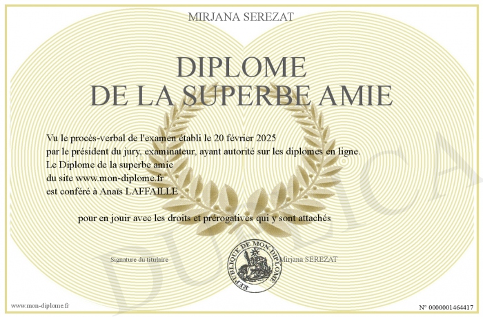 Envoyez par email votre Diplôme de la superbe amie personalisé