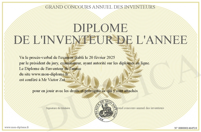 Envoyez par email votre Diplôme de l'inventeur de l'annee personalisé