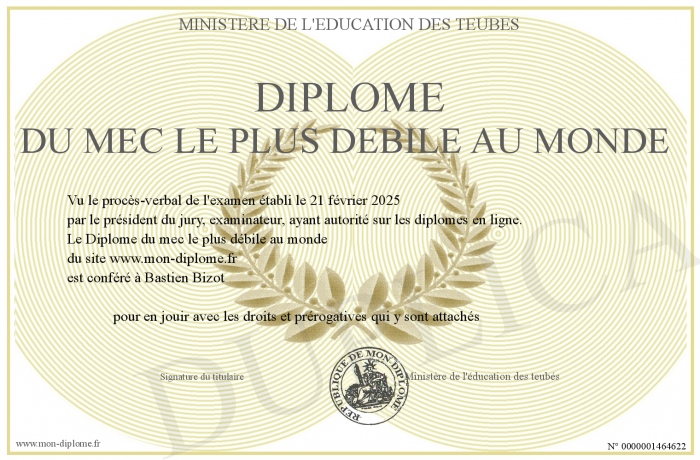 Envoyez par email votre Diplôme du mec le plus débile au monde personalisé
