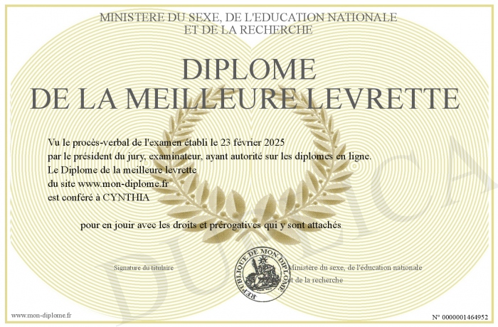 Envoyez par email votre Diplôme de la meilleure levrette personalisé