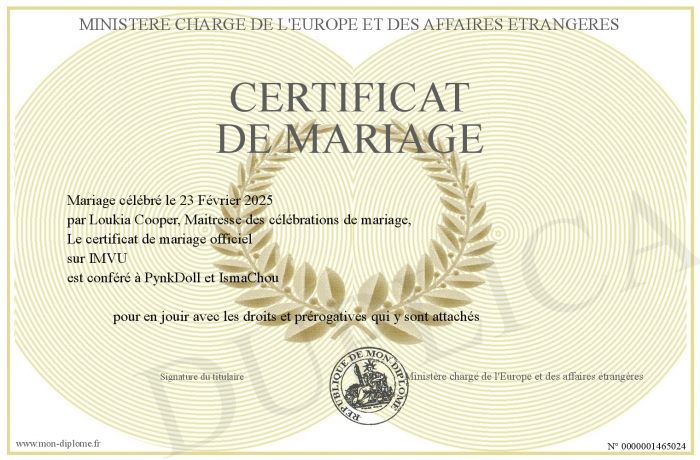Envoyez par email votre Certificat de Mariage personalisé