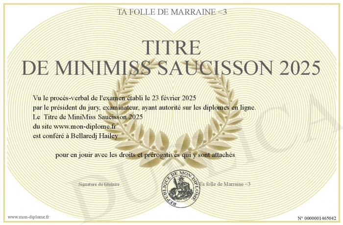 Envoyez par email votre Titre de MiniMiss Saucisson 2025 personalisé