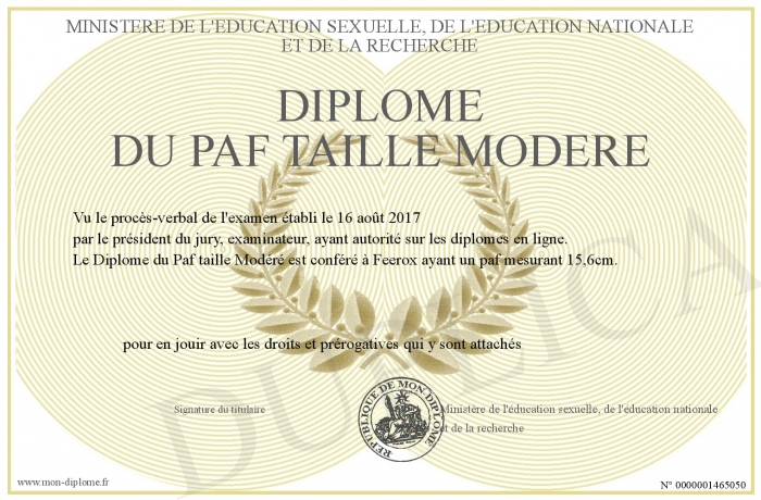 Envoyez par email votre Diplôme du Paf taille Modéré personalisé