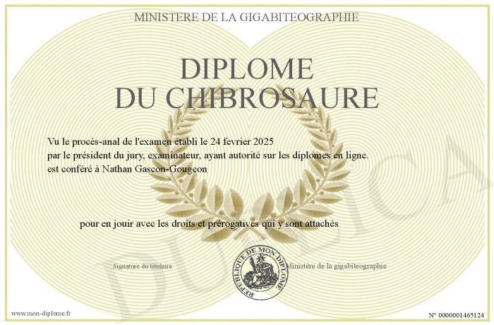 Envoyez par email votre Diplôme du chibrosaure personalisé
