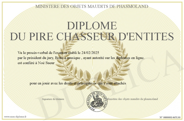 Envoyez par email votre Diplôme du pire chasseur d'entités personalisé
