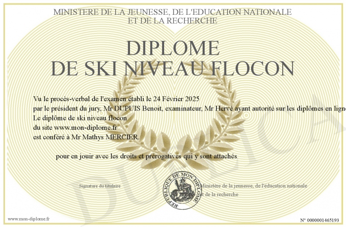 Envoyez par email votre Diplôme de ski niveau flocon personalisé