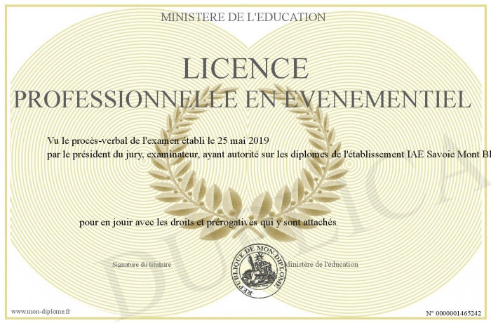 Envoyez par email votre Licence professionnelle en événementiel personalisé