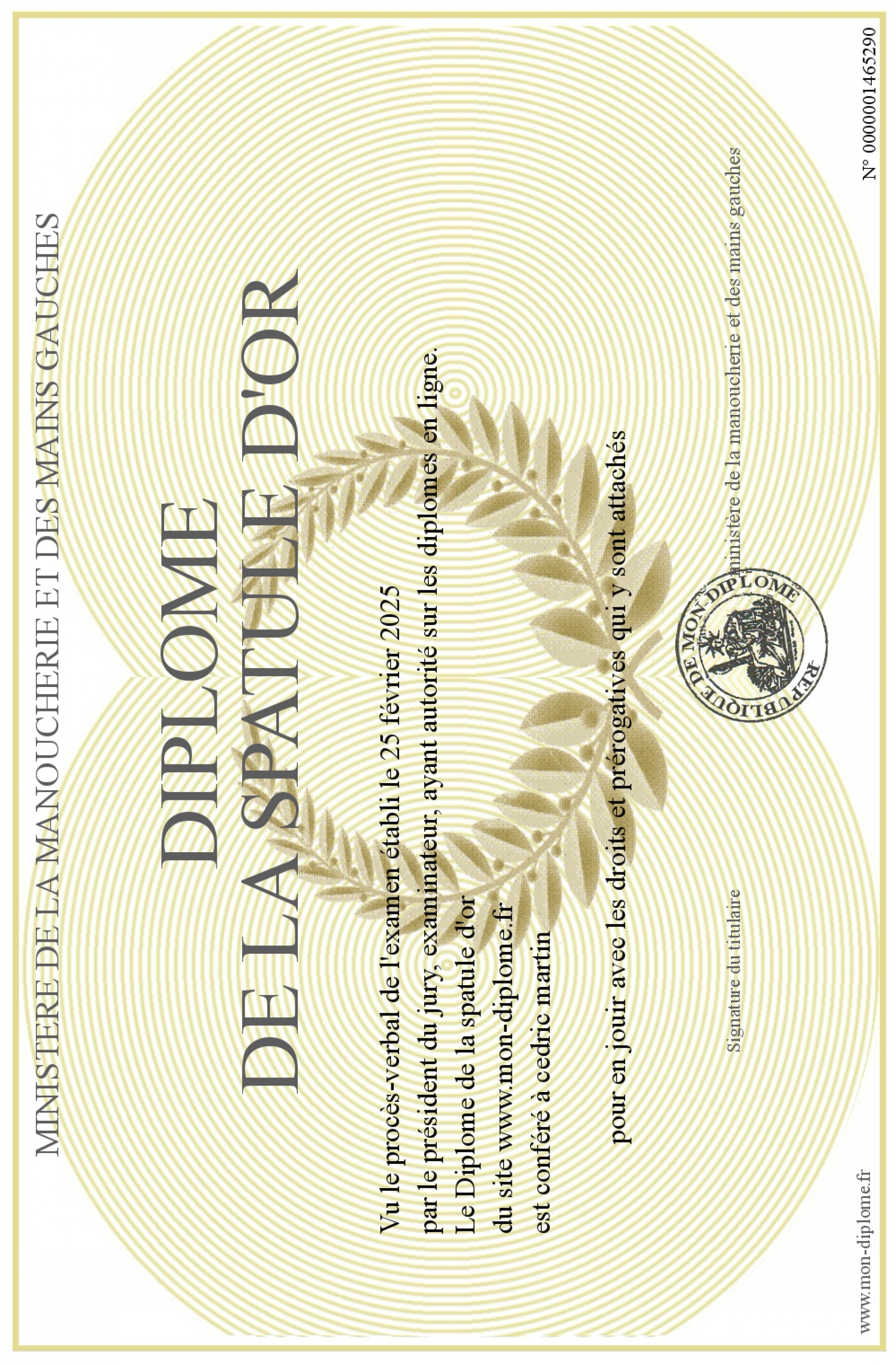 Envoyez par email votre Diplôme de la spatule d'or personalisé