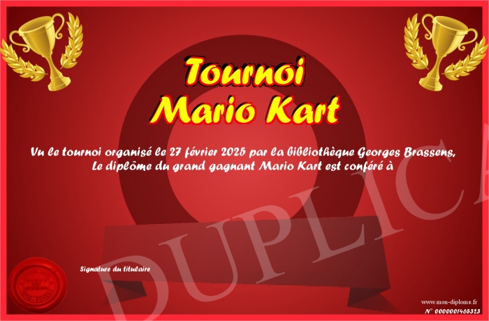 Envoyez par email votre Tournoi Mario Kart personalisé