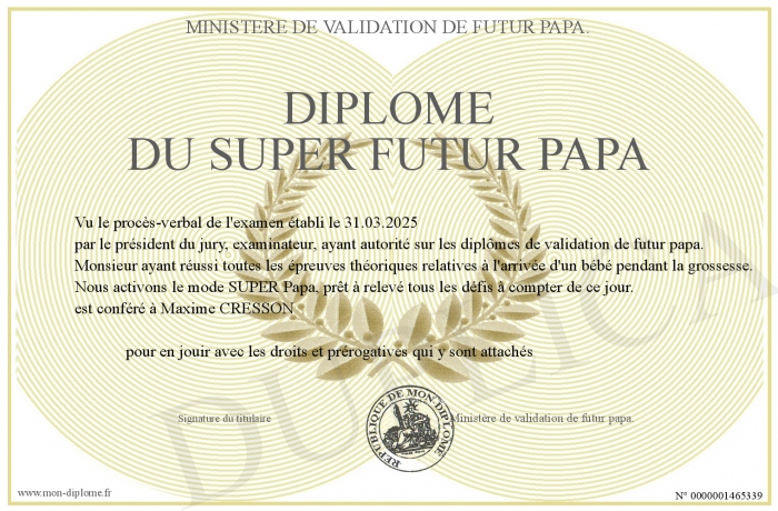 Envoyez par email votre Diplôme du super futur papa personalisé
