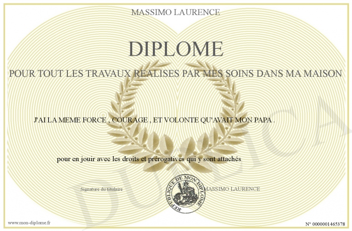 Envoyez par email votre DIPLOME pour tout les travaux réalisés par mes soins dans ma maison personalisé
