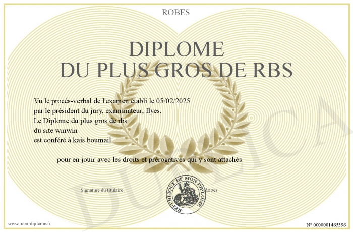 Envoyez par email votre Diplôme du plus gros de rbs personalisé