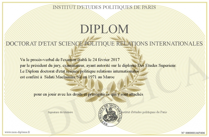 Envoyez par email votre Diplom doctorat d'etat science politique relations internationales personalisé
