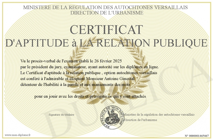 Envoyez par email votre Certificat d'aptitude à la relation publique personalisé