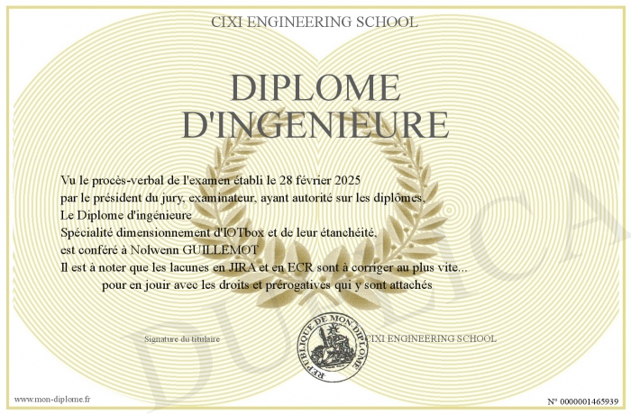 Envoyez par email votre Diplôme d'ingénieure personalisé
