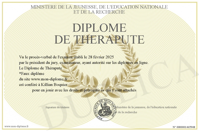 Envoyez par email votre Diplôme de Thérapute personalisé