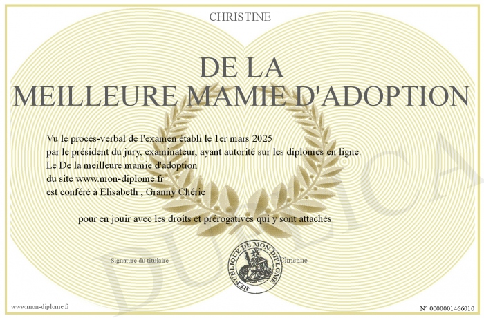Envoyez par email votre De la meilleure mamie d'adoption personalisé
