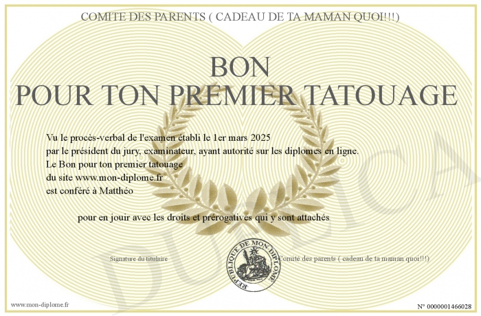 Envoyez par email votre Bon pour ton premier tatouage personalisé