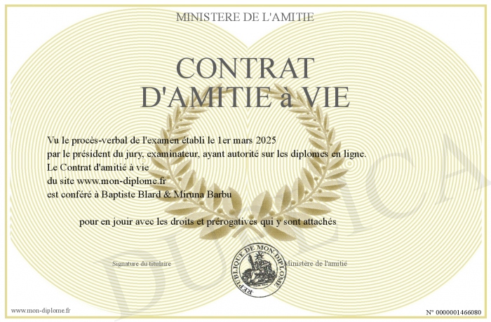 Envoyez par email votre Contrat d'amitié à vie personalisé