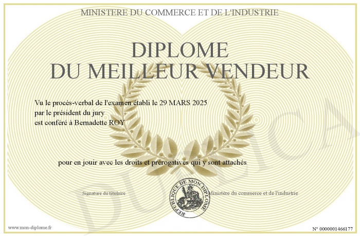 Envoyez par email votre Diplôme du meilleur vendeur personalisé