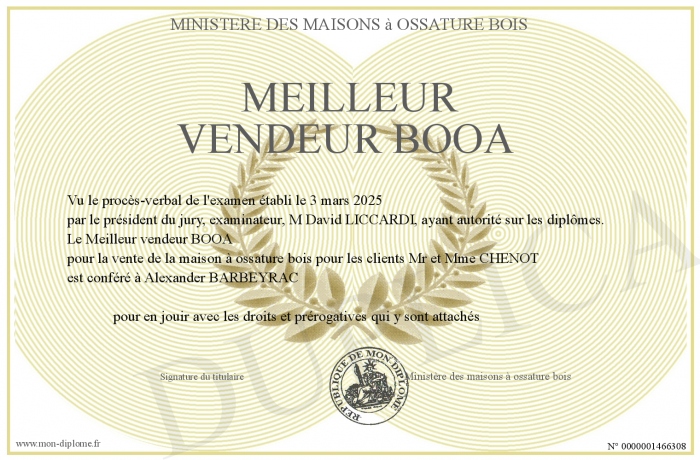 Envoyez par email votre Meilleur vendeur BOOA personalisé