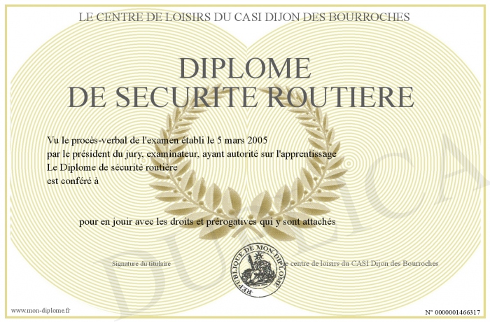 Envoyez par email votre Diplôme de sécurité routière personalisé