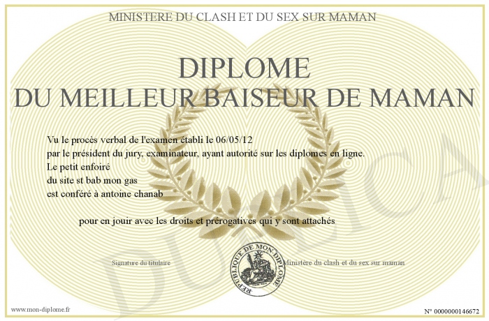Envoyez par email votre diplome du meilleur baiseur de maman personalisé