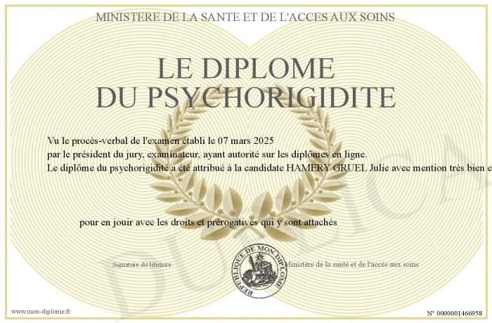 Envoyez par email votre Le diplôme du psychorigidité personalisé