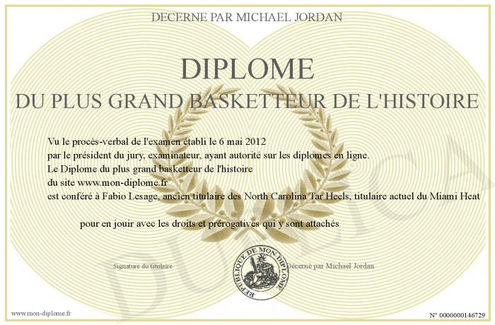 Envoyez par email votre Diplôme du plus grand basketteur de l'histoire personalisé