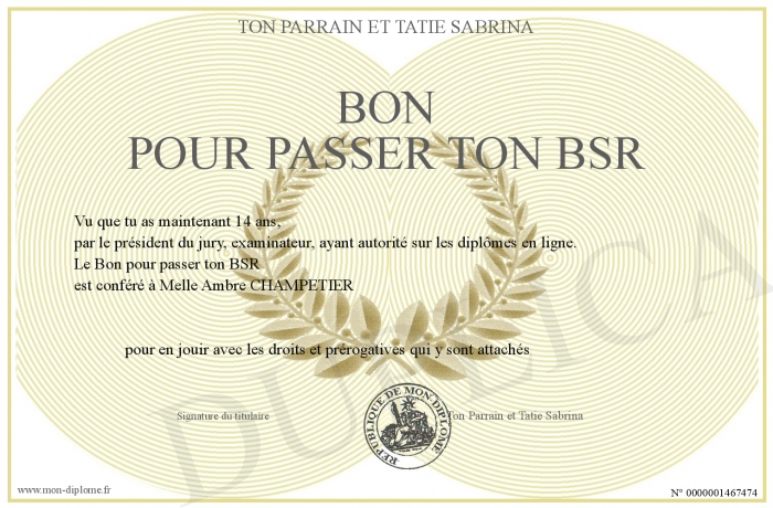 Envoyez par email votre Bon pour passer ton BSR personalisé