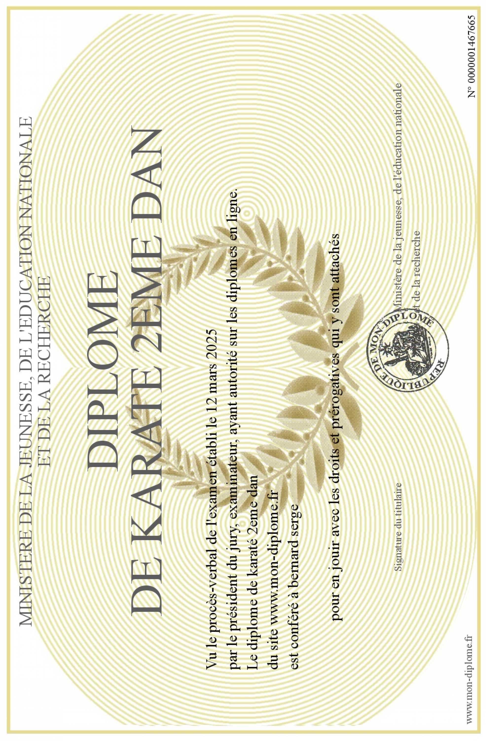 Envoyez par email votre diplôme de karaté 2eme dan personalisé