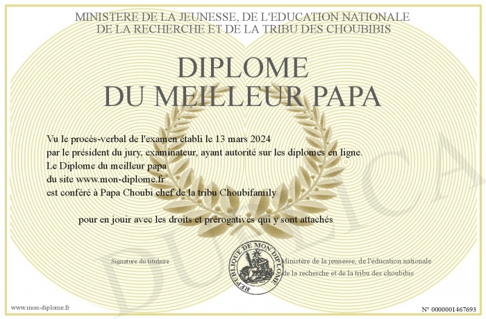Envoyez par email votre Diplôme du meilleur papa personalisé