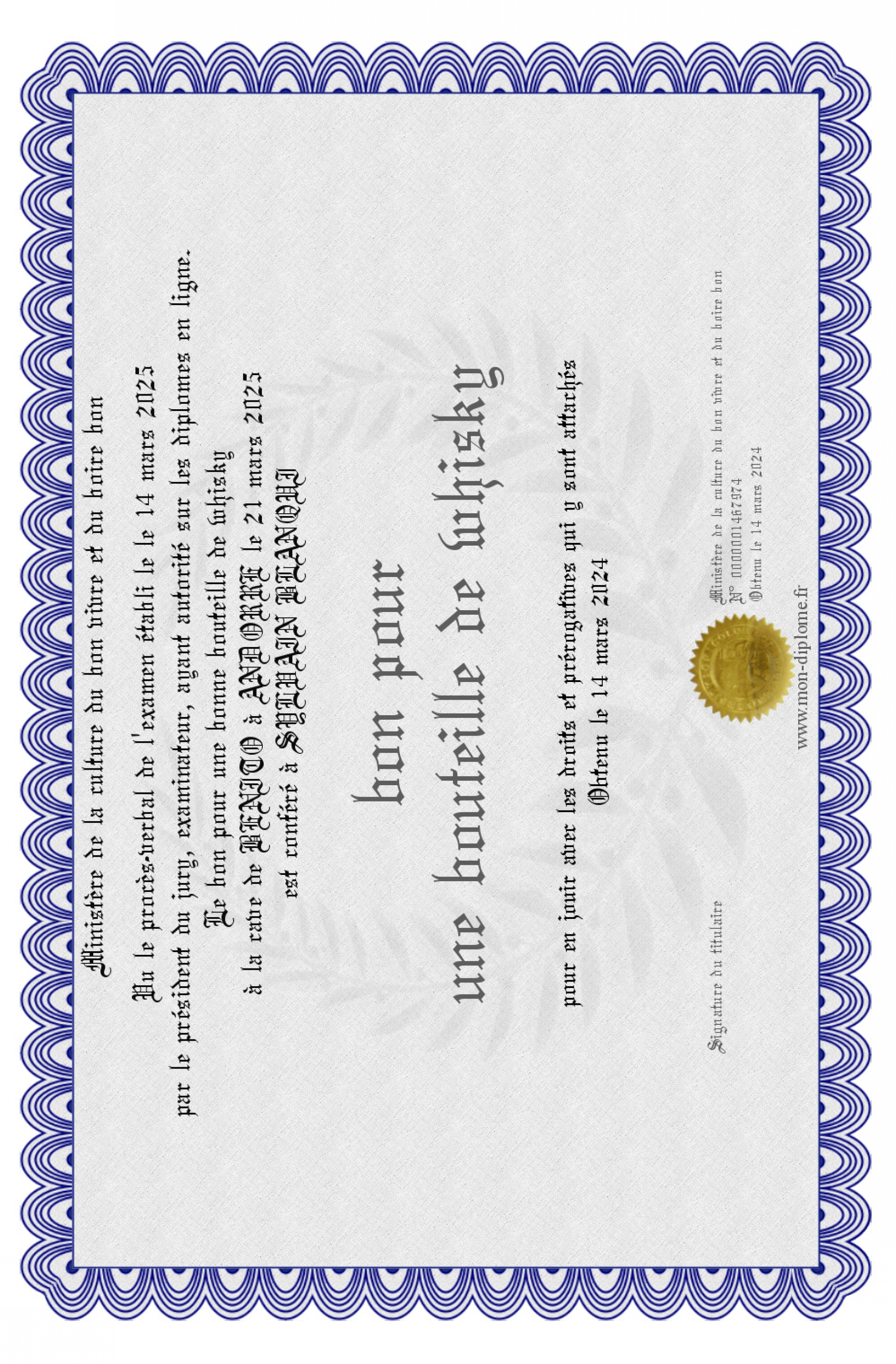 Envoyez par email votre bon pour une bouteille de whisky personalisé