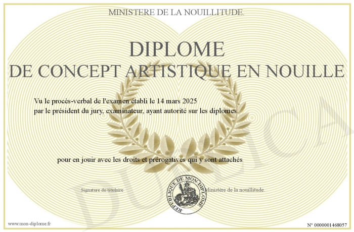 Envoyez par email votre Diplôme de concept artistique en nouille personalisé