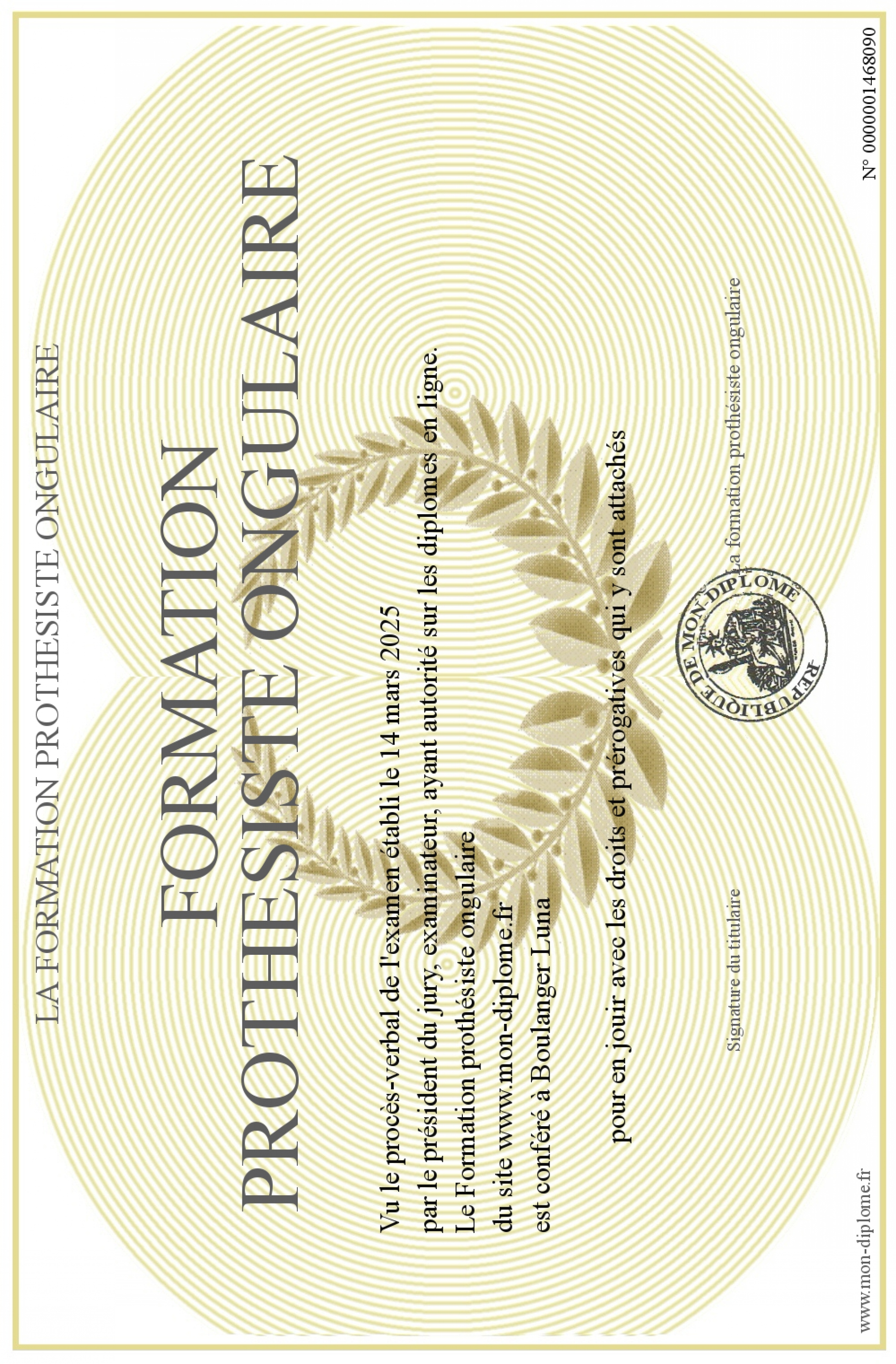 Envoyez par email votre Formation prothésiste ongulaire personalisé