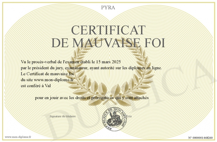 Envoyez par email votre Certificat de mauvaise foi personalisé