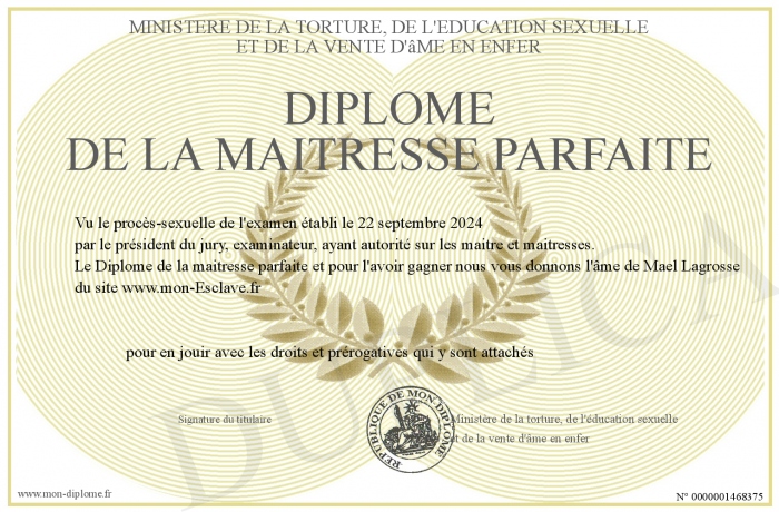 Envoyez par email votre Diplôme de la maitresse parfaite personalisé