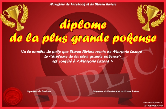 Envoyez par email votre diplome de la plus grande pokeuse personalisé