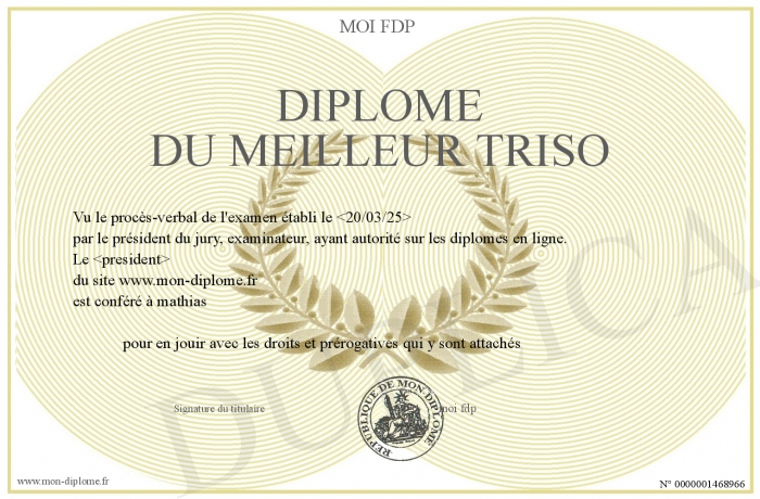 Envoyez par email votre Diplôme du meilleur triso personalisé