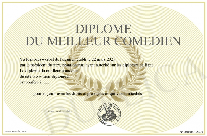 Envoyez par email votre diplôme du meilleur comédien personalisé